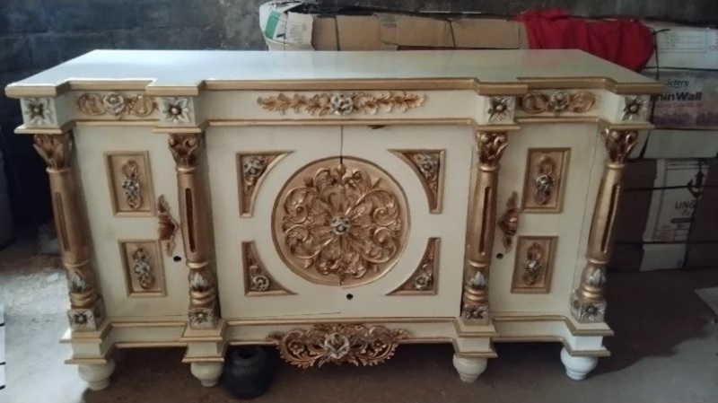 Memilih warna ini dapat memberikan kesan luas dan cerah pada ruangan. Sangat cocok untuk ruang tamu dengan pencahayaan alami minim. Dari segi estetika, warna putih ini akan mampu menonjolkan ukiran khas furnitur klasik. Bufet ini sangat luwes dipadukan dengan dekorasi warna apapun.